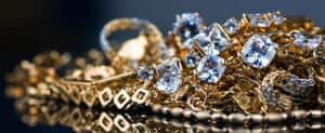 Close-up image of elegant gold jewelry with dazzling diamonds, highlighting the premium quality and expert design offered by david stern jewelers.