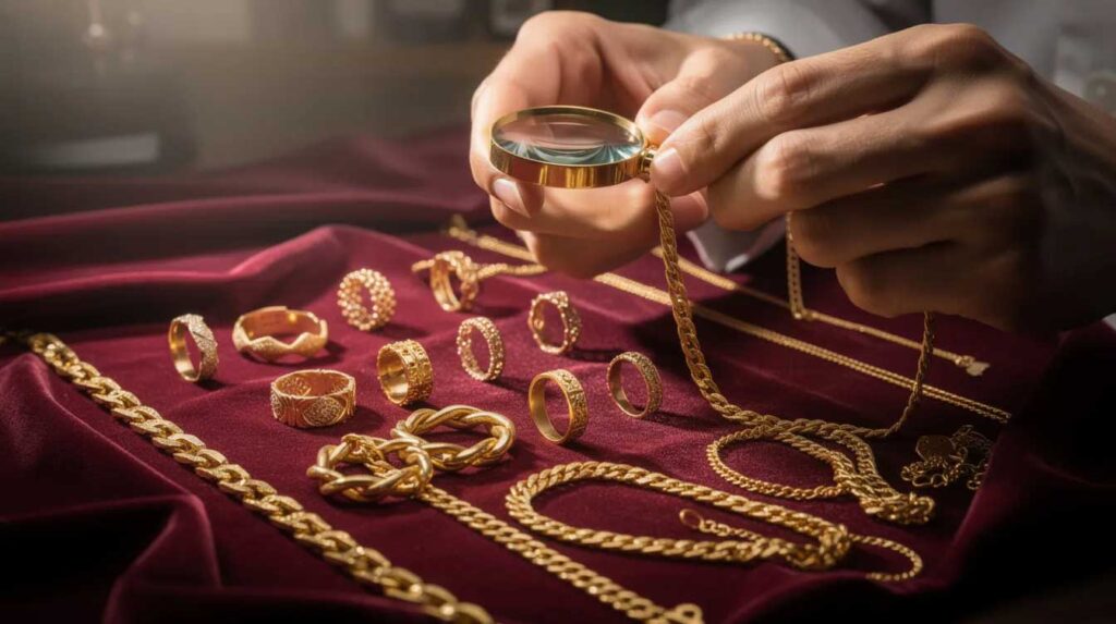 - Condition and purity adjustments: Broken jewelry, scrap, and lower-karat gold are paid based on actual metal content after testing. A 14-karat gold ring contains only 58.3% pure gold, so its value reflects that proportion of the current price.